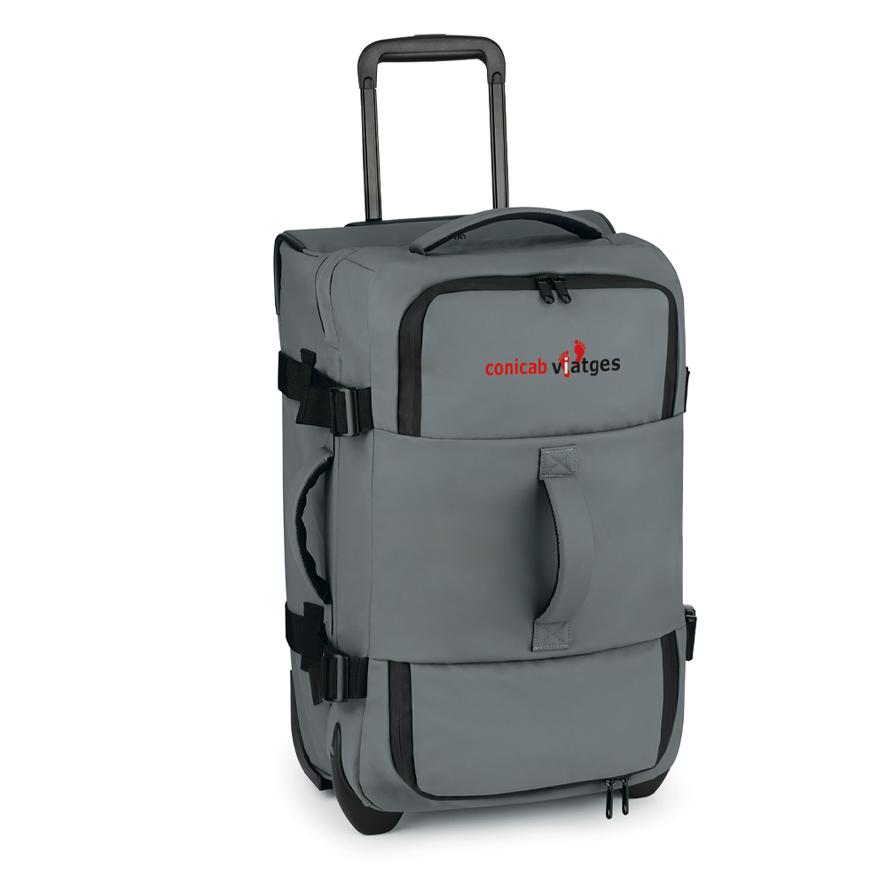 Valise à roulettes conçue comme bagage à main en cabine. Ses rangements sont très accessibles pour transporter vos effets personnels comme vos tenues. Très maniable grâce à son manche téléscopique et à ses roues haut de gamme. Idéal pour les voyages pour lesquels la compagnie aèrienne n’autorise pas de bagage rigide.Imperméable, il est également très approprié pour les voyages d’Aventure.