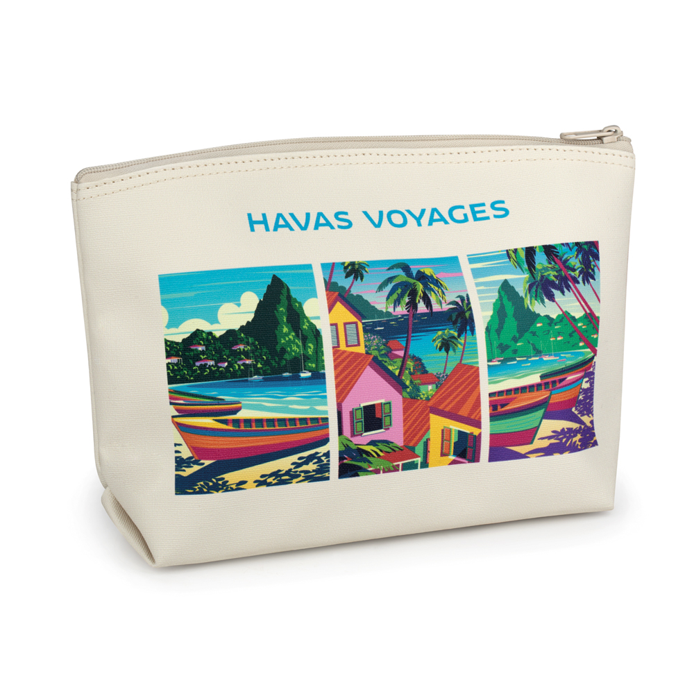 Trousse de toilette, multifonction, personnalisable, idéale pour un cadeau original. Marquage en multicouleurs sur toute la surface.