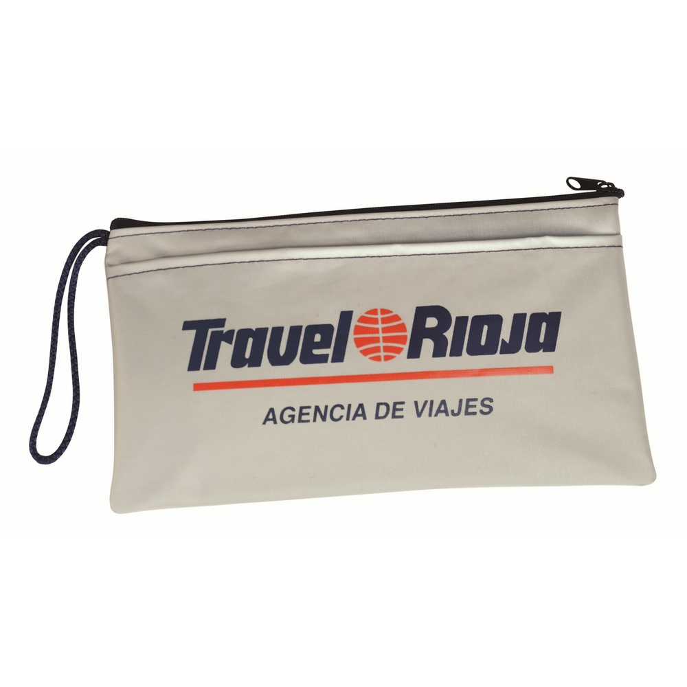 Pochette en nylon, se ferme par fermeture éclair et équipée d’une poche extérieure idéale pour les billets d’avion. Choix des couleurs. Commande minimale de 250 pièces.